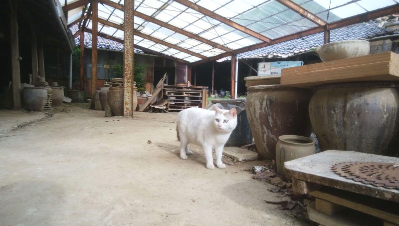 調査を始めると、工場の奥からきれいな白猫がトコトコやってきて出迎えてくれました。白いといえば…
