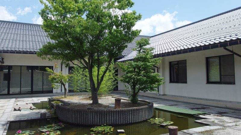 場所は島根県埋蔵文化財調査センター。中庭にある木陰と池が涼しそうですね。