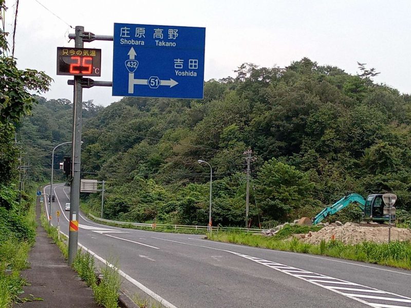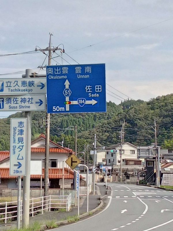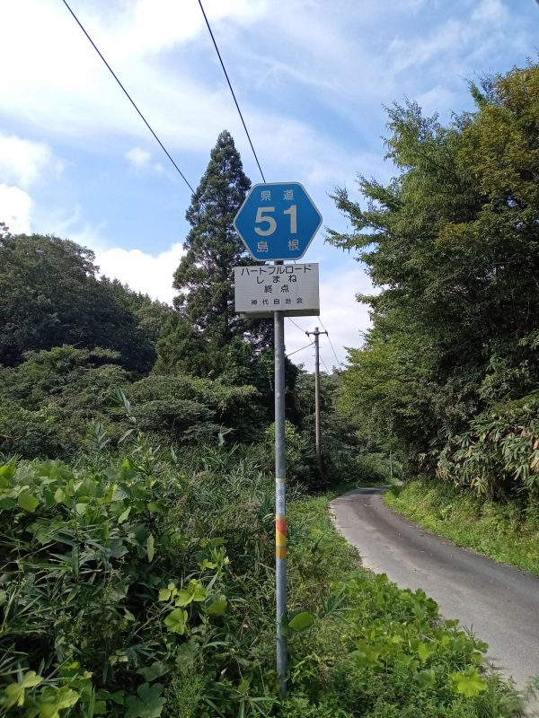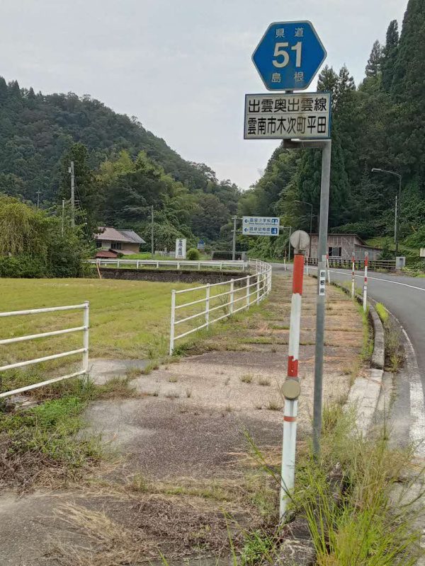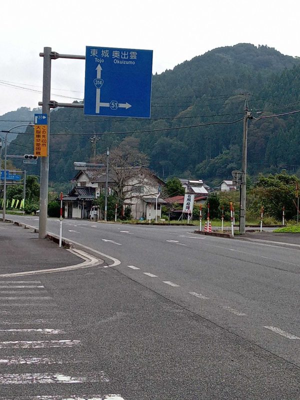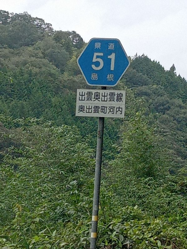 広域農道、通称「飯石ふれあい農道」の神代トンネルを通り抜けると、県道51号線(出雲奥出雲線)の交差点(写真1)に出ます。