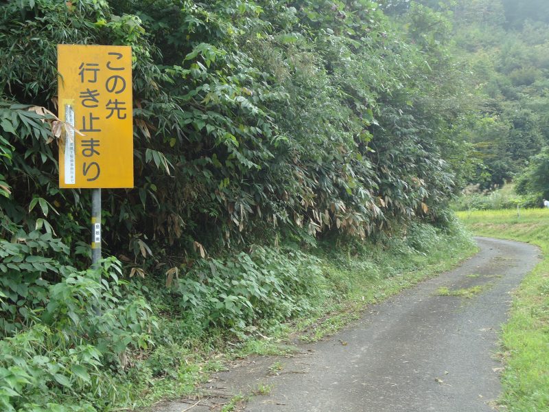 人家が途切れる所にも「この先行き止まり」の立て看板(写真4)。