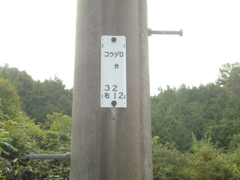 参道脇の鉄柱は、国道51号線沿いの鉄柱(写真14,15)「コウジロ 分」から拝殿までの電線用でした。
