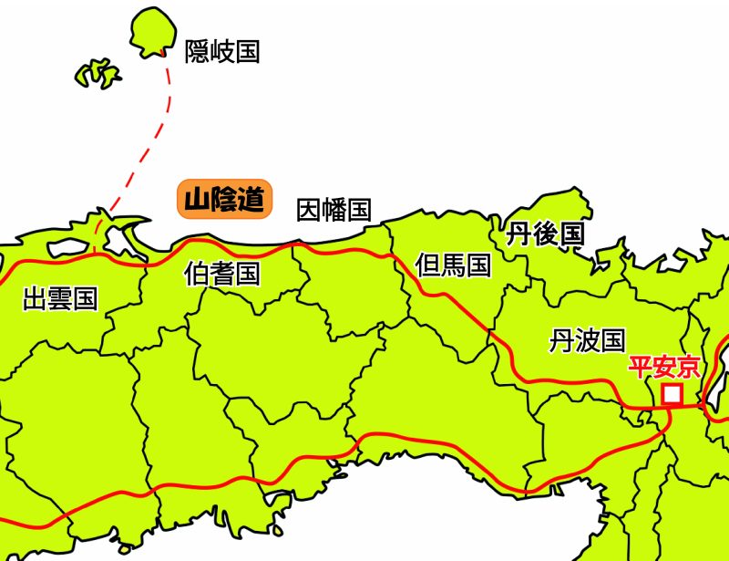 地図を見てもらえればわかりますが、京から出雲へは、「丹波」から直接但馬へ入るルートが一般的で、わざわざ「丹後」を経由する必要はありません。私が調べた限りでは、古代に京から出雲へ向かう際、丹後を経由した事例は、この1例のみでした。