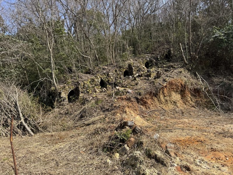 以前は森で見えなかった登窯が、見学者のために伐採され、よく見えるようになりました。全長約31m、11の部屋がある登窯は、焚口部分が破損し、昭和51年にガス窯に代わりました。現在も周りで陶土をとっており、焼物に適した粘土が豊富にある地域です。