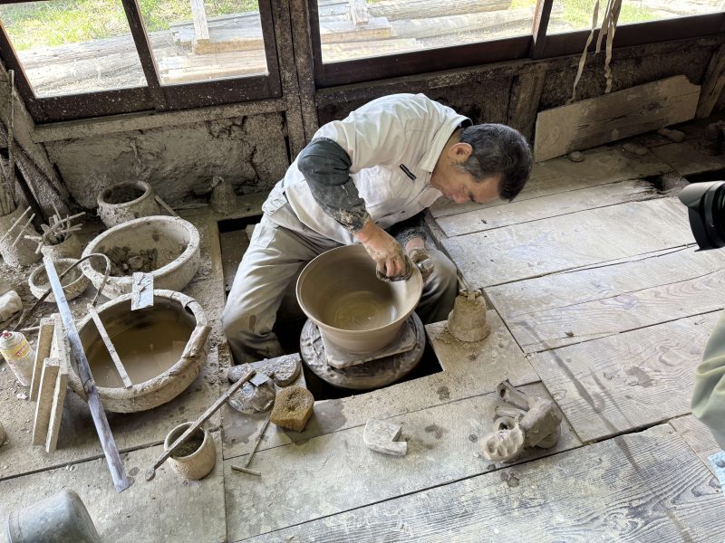 石見焼の代表的な甕(はんど)の下部を成形しています。