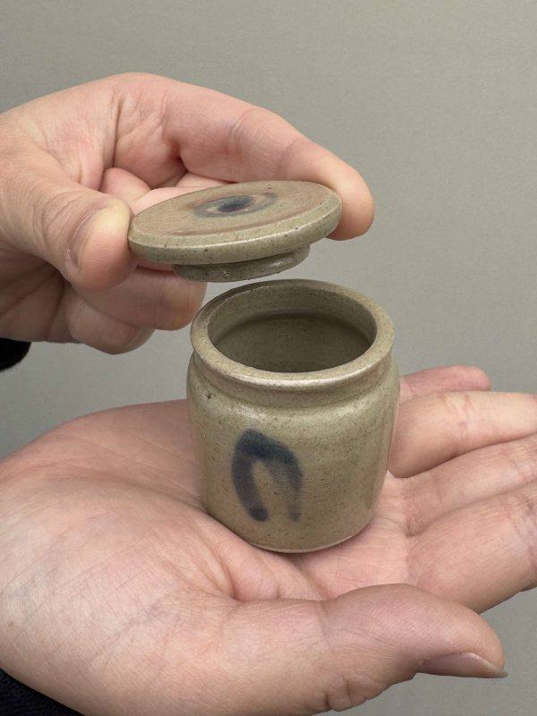 石見焼は、水がめや物を蓄えるつぼ、すり鉢などの中大型品が有名ですが、手のひらにのる小さなふたつぼがありました。