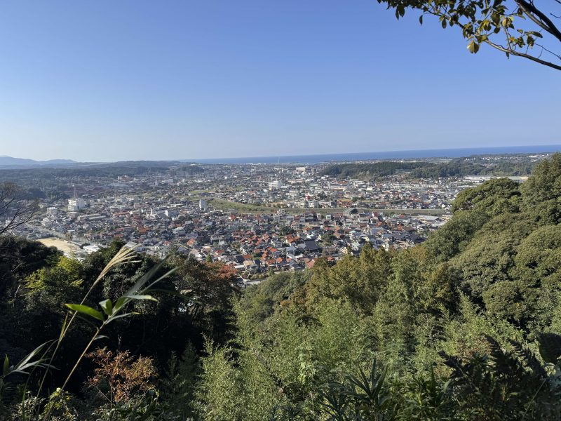 益田市の七尾城(標高約118m)からは、市街とその先に広がる日本海まで見渡すことができました。