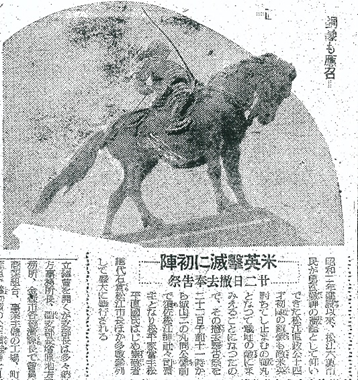 島根県内でも回収が始まり、1943(昭和18)年には岸清一、若槻礼次郎(当時は松江市上乃木の床几山《しょうぎさん》にありました)、松平直政の銅像3体が「応召《おうしょう》されることが決まります。「応召」には国のために進んで召されるという意味が含まれており、銅像の供出が出征《しゅっせい》と重ねられていたことが読み取れます。そして、直政像は同年11月22日、若槻礼次郎・岸清一像は24日に壮行祭が行われ、回収されていきました。