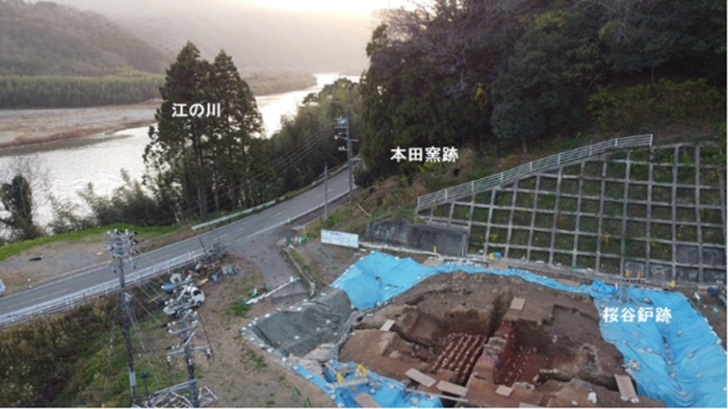 明治時代以降、たたら製鉄は徐々に洋鉄に押されて生産量を減らし、代わるように石見焼の生産が増えます。桜谷鈩跡の横では石見焼の登窯である本田窯跡が調査されました。