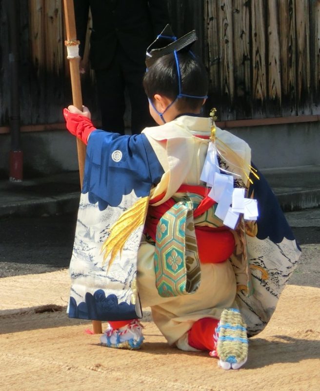 着飾った男児の背中に、海藻や紙垂《しで》と一緒に若葉の付いた梅の楉が1本、帯に挿し込まれていたのです。その時は梅の産地らしい飾りくらいに思っていましたが、その後、各地の祭りや神事でも梅の楉が使われていることに気付きました。