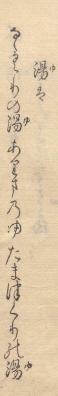 さらに、紫式部は自らの日記『紫式部日記』の中で清少納言のことを「したり顔」(得意顔)で「さかし」(利口ぶっている)など、かなり辛口な評価を下しています。この厳しい評価は、裏を返せば紫式部が清少納言を強く意識していたことの表れといえます。 余談が長くなってしまいましたが、紫式部のライバルとされる清少納言の随筆『枕草子』117段「湯は」に「ななくりの湯、ありまの湯、たまつくりの湯」(写真)と記されています。