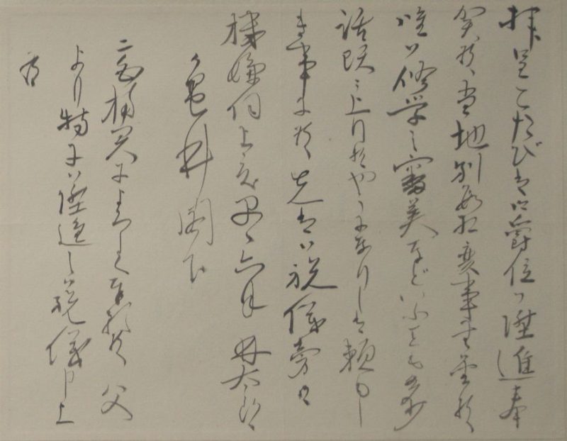 拝呈、こたびは御爵位御陞進奉賀候、当地別段相変事無御座候、唯々修学之審美などいうことも多少話題ニ上り候やうになりしは頼もしき事に候、先は御祝儀旁御機嫌伺上度、早々、六月 林太郎