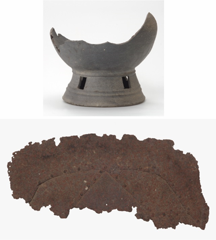 そこで注目されるのが、短甲と共に出土した土器です。その特徴から、約400㌔離れた朝鮮半島東南部(新羅《しらぎ》・加耶《かや》地域)で作られたもので、日本海を越えてはるばる運ばれてきたことが分かります。つまり、美保関の首長は海上交通で活躍した人物で、朝鮮半島との交易・交渉にも関わったとみられるのです。